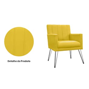 Conjunto 2 Poltronas Estofadas Para Recepção Pés de Ferro Cecília Corano Amarelo - LM DECOR