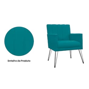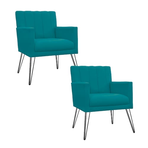 Conjunto 2 Poltronas Estofadas Para Recepção Pés de Ferro Cecília Suede Azul Turquesa - LM DECOR
