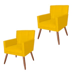 Conjunto 2 Poltronas Estofadas Pés Palito Sala de Visitas Onix Corano Amarelo - LM DECOR