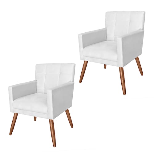 Conjunto 2 Poltronas Estofadas Pés Palito Sala de Visitas Onix Suede Branco - LM DECOR