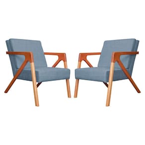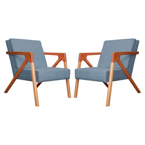 Conjunto 2 Poltronas Monalisa Com Braços de Madeira Linho Azul - LM DECOR - Azul Petróleo
