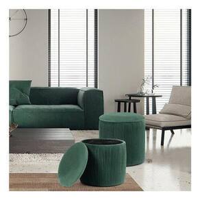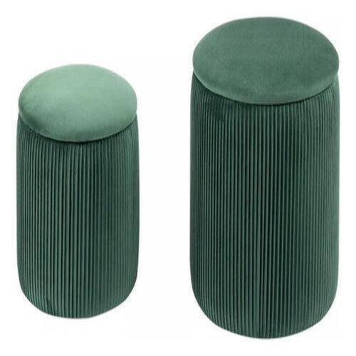 Dimensões: Puff menor: 36 cm de altura e 35 cm de diâmetro. Puff maior: 44 cm de altura e 42 cm de diâmetro. Material: Estrutura robusta revestida em tecido verde de alta qualidade. Capacidade de Peso: Cada puff suporta até 100 kg. Cor: Verde, trazendo uma sensação de tranquilidade e sofisticação ao ambiente. Funcionalidades: