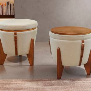 Conjunto 2 Puffs Baú Fênix Mesa Castellar Móbile - Bege