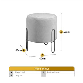 Podemos utilizar o puff redondo decorativo de várias maneiras: apoio de pés, mesinha de centro, entre outros. O puff decorativo Mali é uma peça linda e moderna na decoração de seu ambiente.