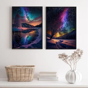 Conjunto 2 quadros decorativos aurora boreal 45x34cm - com vidro Moldura: madeira preta Informações do produto tire todas as suas dúvidas no descritivo abaixo: decoração para quarto, sala, cozinha, escritório, área gourmet e muito mais. Chega de paredes vazias medidas - cada peça tem 45x34cm a3 . Material do papel - papel fotográfico brilhante de altíssima resolução acabamento - todos os quadros são acompanhados de vidro para proteção da imagem. - moldura em madeira maciça na cor preta ou branca conforme produto escolhido e pendurador . - os quadros são embalados de forma segura com plástico bolha com camada dupla de acordo com o tamanho dos quadros. Garantia - garantia de 3 meses. Meu quadro chegou. Como posso fixá-lo Você precisa apenas de um martelo e um prego, pois os quadros já vão acompanhados de penduradores. Esta é a forma mais indicada. Como posso limpar meu quadro A limpeza é feita como um móvel comum da sua casa. Apenas um pano seco ou espanador são suficientes para tal Ean: 7894021058354