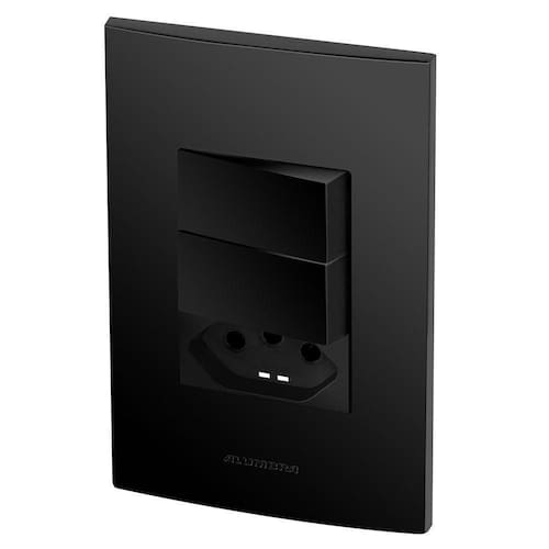 Alumbra Inova Pro Class - Placas Preto Fosco / Módulos Preto Fosco Linha Modular de Interruptores e Tomadas Conjunto Completo Desmontado: 2 Módulos de Interruptor Simples 1 Módulo de Tomada 10A 1 Placa 4X2 para 3 Módulos 1 Suporte 4X2 2 Parafusos Cor: Preto - Preto Fosco Para montar é apenas um click, só encaixar