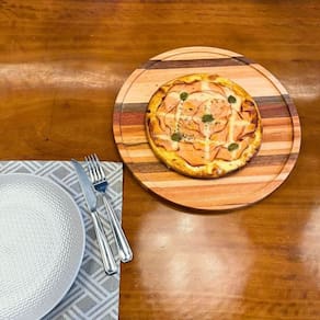 O conjunto de 2 tábuas de madeira para servir pizzas, frios, e petiscos é uma opção versátil e elegante para qualquer ocasião gastronômica. Este conjunto inclui duas tábuas de diferentes tamanhos: uma de 35cm e outra de 38cm de diâmetro. Isso oferece versatilidade para servir uma variedade de alimentos, desde petiscos individuais até pizzas familiares. O acabamento natural da madeira confere um charme rústico e elegante às tábuas, complementando a apresentação dos alimentos e adicionando um toque de sofisticação à mesa.
