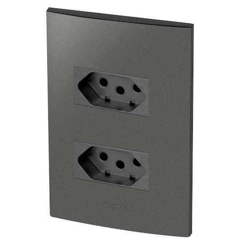 Alumbra Inova Pro Class - Placas Grafite / Módulos Grafite Linha Modular de Interruptores e Tomadas Conjunto Completo Desmontado: 2 Módulos de Tomada 10A 1 Placa 4X2 para 2 Módulos 1 Suporte 4X2 2 Parafusos Cor: Grafite Para montar é apenas um click, só encaixar