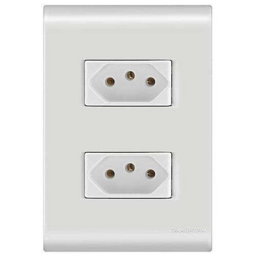 Interruptores e Tomadas - Tramontina Liz Branca Conjunto completo com: 2 Módulos de Tomada 10A 1 Placa 4X2 1 Suporte 4X2 2 Parafusos Os itens acima são enviados desmontados, para montar é fácil, só encaixar.