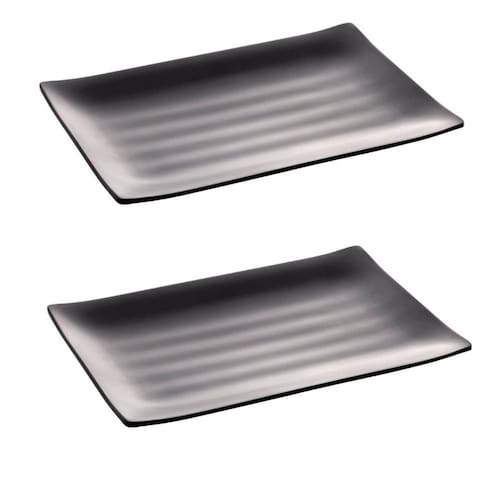 Garantia: 90 dias / Peso de cada: 170g / Cor predominante: preto / Ref.: 7794463564362; Dimensões de cada: 24,5cm (C) x 16,5cm (L) x 2,5cm (A); Material: melamina; Conteúdo: 2 travessas para sushi.