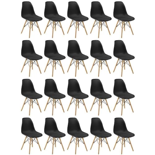 Altura: 82 | Tonalidade: Preta | Material da Estrutura: Madeira e Metal | Cor: Preta | Peso do Produto: 5 | Cômodo Indicado: Cozinhas | Produto: Cadeiras | Largura: 45 | Fabricante: Magazine Decor | Número do modelo: 1 | Principais Características do Produto 1: A Cadeira Charles Eames Eiffel Wood possui um design exclusivo, belo e cheio de charme. | Exige montagem: Sim | Principais Características do Produto 2: As Cadeiras Charles Eames Eiffel são constituídas de materiais mais leves e resistentes. | Baterias são necessárias?: Não | Certificação de teste externa: Não | Is Fragile: Não | Número de caixas: 4 | Principais Características do Produto 0: As Cadeiras Eiffel são importantes itens para a sua decoração. | Número da peça: 1 | Peso do item: 5 | Palavras-chave de Pesquisa: Cadeiras | Componentes incluídos: 20 Cadeiras | Quantidade de itens: 20 | Dimensões do item P x L x A: 82x100x100