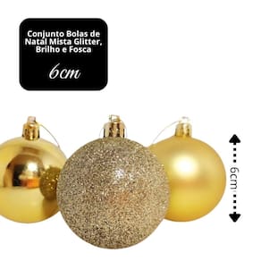 Cada bola possui acabamento prime, garantindo alta durabilidade, cores vivas e um efeito decorativo de destaque. O dourado é uma cor versátil que combina facilmente com outros tons natalinos, como vermelho, verde, branco ou champanhe, permitindo composições sofisticadas e festivas.