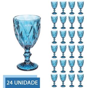 Conjunto 24 Copos Azul Taça Diamante Agua Vinho 300ml