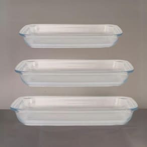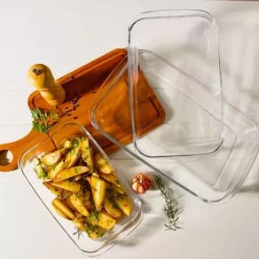 Fabricadas em vidro de alta resistência, essas assadeiras são versáteis e duráveis, podendo ser utilizadas no forno, micro-ondas, geladeira e freezer, além de serem fáceis de limpar. Seu design sofisticado adiciona um toque especial à sua cozinha e serve diretamente à mesa com estilo.