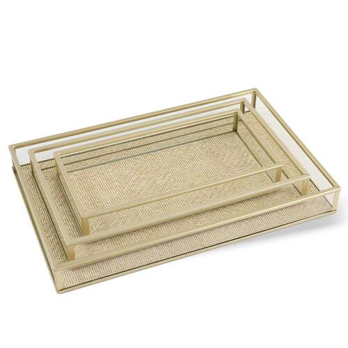 Conjunto 3 Bandejas Decorativas em Vidro e Metal Dourado