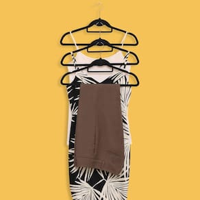 Além de ser ultrafino, ele tem um gancho frontal que permite pendurar um cabide no outro. Com ele, colocar a roupa no cabide para o lado errado não é um problema: seu gancho é giratório.
