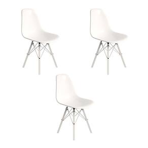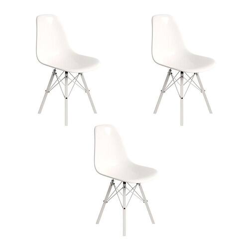ATENÇÃO AS IMAGENS SÃO MERAMENTE ILUSTRATIVAS E PODEM SOFRER VARIAÇÕES DE COR E PEQUENOS DETALHES DE ACORDO COM O SEU MONITOR, ILUMINAÇÃO DO AMBIENTE E ATÉ MESMO A SUA PERCEPÇÃO VISUAL.Conjunto 3 Cadeiras Eames Design Moderno Tubo de Ferro Branco Assento Branco