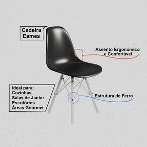Características: Modelo: Cadeira Eames Material da Estrutura: Ferro Cor da Estrutura: Branco Material do Assento: Polipropileno Cor do Assento: Preto Design moderno e funcional