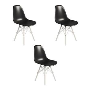 ATENÇÃO AS IMAGENS SÃO MERAMENTE ILUSTRATIVAS E PODEM SOFRER VARIAÇÕES DE COR E PEQUENOS DETALHES DE ACORDO COM O SEU MONITOR, ILUMINAÇÃO DO AMBIENTE E ATÉ MESMO A SUA PERCEPÇÃO VISUAL.Conjunto 3 Cadeiras Eames Tubo Ferro Branco Assento Preto