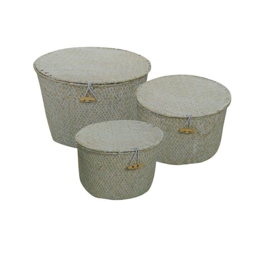 Conjunto 3 Cestas de Palha Branca Cód: TZ0018
