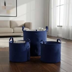 O conjunto com 3 cestos decorativos em veludo azul é perfeito para quem busca organização com estilo. Com toque macio e acabamento sofisticado, eles trazem elegância e praticidade para qualquer ambiente, seja no quarto, closet ou sala de estar.