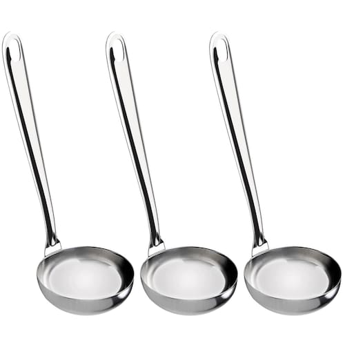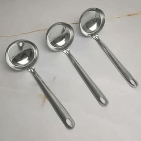 O conjunto de 3 concha de inox da Taumer são ideias para restaurantes, buffets e hotéis. Produzidas em aço inox resistente, possuem acabamento em alto brilho e furo no cabo o que permite pendurar os utensílios enquanto não estiverem em uso. Esta concha inox possui a medida ideal para servir feijão, molhos e sopa. Indispensável para servir a mesa.