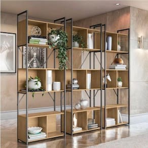 Com design moderno e amplo, o Conjunto de 3 Estantes Altas Kappesberg é perfeito para compor qualquer ambiente, seja ele uma sala de estar, escritório, home office ou dormitório. Com estrutura firme no estilo industrial, as estantes são a melhor escolha para quem quer manter o espaço organizado com um toque de charme. Cada estante possui 3 nichos distintos, com espaço de sobra para guardar livros, itens pessoais, objetos decorativos e muito mais. O acabamento em pintura touch é garantia de qualidade e durabilidade Kappesberg! Altura do Conjunto: 200 cm Ambiente Principal: Sala de Estar codigo_ean: 7909903400036 Cor: Freijó/Preto Cor do Produto: Freijó/Preto Informação Complementar: 3x Estante Alta com 3 Nichos Freijó/Preto Fosco Largura: 72 cm Altura: 200 cm Peso: 30,8994 kg Profundidade: 33 cm Necessita Montagem: Sim