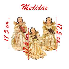 Conjunto 3 Estátuas De Natal Decorativa Em Resina Anjos Musicais Dourados 17,5cm