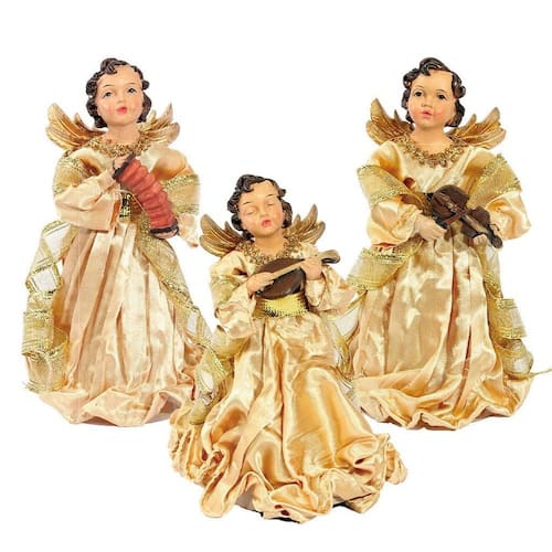 Conjunto 3 Estátuas De Natal Decorativa Em Resina Anjos Musicais Dourados 17,5cm -