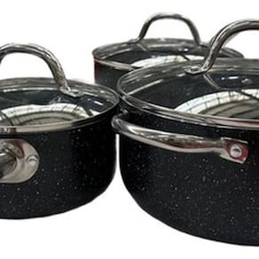 "O Conjunto de 3 Panelas de Alumínio Antiaderente XL da Tognana oferece qualidade, resistência e praticidade para a sua cozinha. Com um revestimento marmorizado antiaderente, evita que os alimentos grudem, facilitando o preparo e a limpeza. Seu design sofisticado e materiais duráveis garantem um desempenho superior no dia a dia.