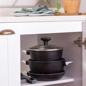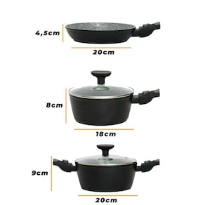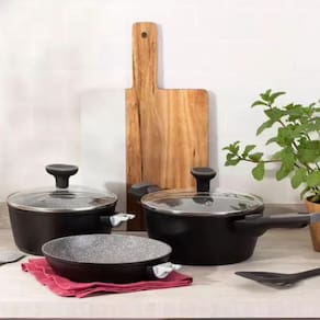 As panelas são de indução e possuem cabos removíveis, facilitando o manuseio, armazenamento e até mesmo levá-las diretamente à mesa. Além disso, o conjunto é composto por uma caçarola com tampa de vidro, uma panela com tampa de vidro e uma frigideira, atendendo a todas as suas necessidades culinárias.