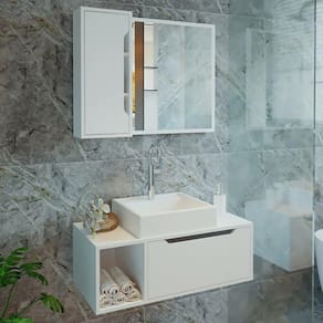 Conjunto 3 Peças Para Banheiro BN3600X44X45, uma ótima opção para quem busca por um banheiro elegante e cheio de personalidade. Gabinete e Espelheira com estrutura em MDP de 15mm, proporcionando maior durabilidade e resistência, contando com acabamento em pintura UV (semi - brilho). Gabinete composto por 1 porta com articulador, dobradiças metálicas e 1 nicho lateral para armazenar itens. Suportando 10kg o tampo e 3kg o nicho. Espelheira composta por 1 porta com frente usinada e dobradiças metálicas, espelho com design retangular e 3 prateleiras internas para armazenar itens, prateleira suporta 3kg cada. Montagem reversível, podendo ser montada para ambos os lados. Cuba produzida em mármore sintético, contando com acabamento em brilho polido. Suportando até 4 litros e 10kg. Possui furação para instalação de torneira (torneira não inclusa). Unindo elementos do design contemporâneo, que proporcionam uma ambientação intimista e com acabamentos refinados. Estes móveis chegarão na sua casa separados em 3 volumes.