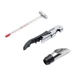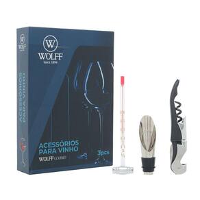 Conjunto 3 Peças para Vinho de Aço Inox Código: 27593 Material: Aço Inox Contém: 1 Saca-rolhas 1 Bico para servir 1 Termômetro
