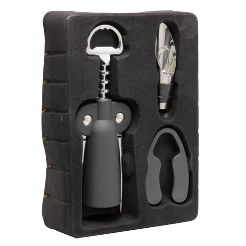 O Conjunto 3 Peças para Vinho da Lyor é a escolha perfeita para os amantes de vinho que buscam elegância e praticidade. Composto por um saca-rolhas, um bico dosador e um cortador, este conjunto é confeccionado em liga de zinco e plástico na cor preta, garantindo durabilidade e estilo sofisticado.