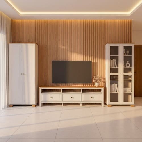 Itens Inclusos: 1 Rack, 1 Cristaleira, Armário, Manual de Montagem e Kit Ferragens Largura do Conjunto: 180 cm Linha ou Coleção: Ananda Marca: CabeCasa MadeiraMadeira Material Principal: MDF Necessita Montagem: Sim Origem do Produto: Nacional Possui Rodízio: Não Profundidade do Conjunto: 412 Quantidade de Produtos: 3 Recomendações de Uso, Manutenção e Limpeza: Pano levemente umedecido, não usar produtos químicos ou abrasivos Sistema de Montagem: Parafusos, Cavilhas, Minifix, Corrediça e Trapézio. Suporta Até (kg): 30 kg