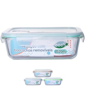 3 Pote de Vidro 1520ml com Tampa Hermética
