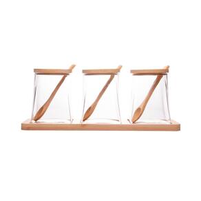Conjunto 3 Potes 350 ml Vidro com Colher e Bandeja de Bambu Wolff