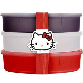 O Conjunto de Potes Hello Kitty, são perfeitas para o transporte de alimentos. Foi criado e pensado na segurança e praticidade. Com 3 peças, as refeições serão ainda mais incríveis
