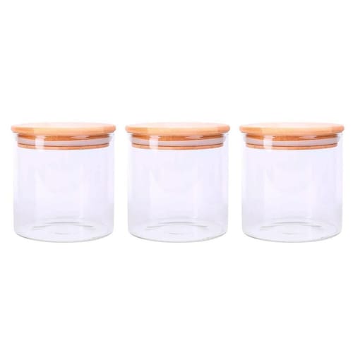 Conjunto 3 Potes de Vidro 500ml Com Tampa de Madeira Bambu Porta Condimentos Pote Hermético de Vidro com Tampa de Bambu: Conservação Elegante e Eficiente para seus Alimentos