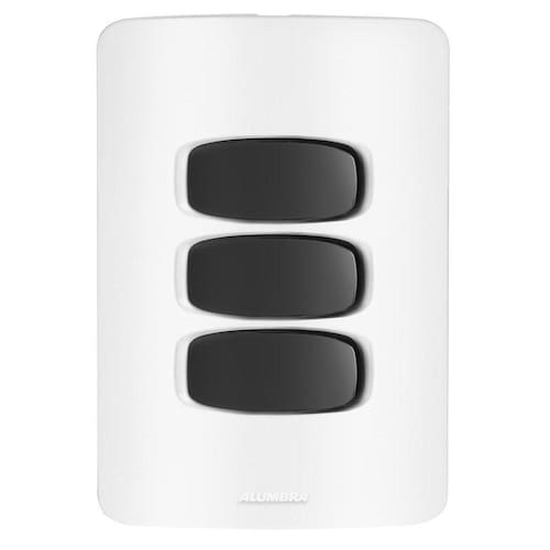 Alumbra Gracia - Placa Branca / Módulos Pretos / Interruptores e Tomadas Conjunto Completo Desmontado com: 3 Módulos de Interruptores Simples 1 Placa para 3 módulos 4X2 1 Suporte 4X2 2 Parafusos Para montar é apenas um click, apenas encaixar