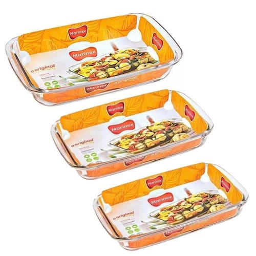 Conjunto 3 Un. Assadeiras Marinex ResistentesBrand NADIR Marca NADIR As assadeiras Marinex podem ser usadas para assar, preparar, servir alimentos prontos.É ideal em fornos convencionais, de micro-ondas, lava-louças e freezer. produzido em vidro; 100% reciclável; higiênico e fácil de limpar.Especificações:marca: NadirMaterial: VidroItem 1- 1 Un. Assadeira Retangular 1,6L- Dimensões AxLxC : 5000 x 17800 x 29600- Peso: 930 gItem 2 - 1 Un. Assadeira Retangular 2,2L- Dimensões AxLxC : 5200 x 20900 x 34600- Peso: 1340 gItem 3- 1 Un. Assadeira Retangular 2,9L- Dimensões AxLxC : 5100 x 23900 x 39400- Peso: 1780 g
