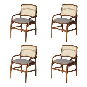 AS IMAGENS SÃO MERAMENTE ILUSTRATIVAS E PODEM SOFRER VARIAÇÕES DE COR E PEQUENOS DETALHES DE ACORDO COM O SEU MONITOR, ILUMINAÇÃO DO AMBIENTE E ATÉ MESMO A SUA PERCEPÇÃO VISUAL.Conjunto 4 Cadeiras de Cozinha FlorenÃa em Madeira Jequitibà Terra BraÃo Encosto Palha Linho Cinza
