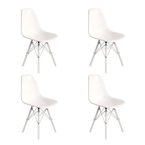 Conjunto 4 Cadeiras Eames Design Moderno Tubo de Ferro Branco Assento Branco