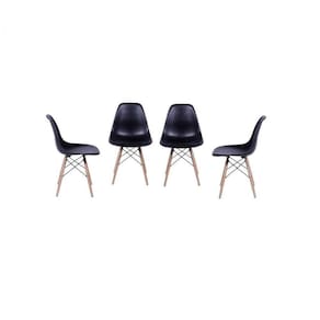 Informação Complementar: 4x Cadeira Eames Base de Madeira Preto Largura: 46,5 cm Altura: 80,5 cm Peso: 4,62 kg Profundidade: 42 cm Necessita Montagem: Sim