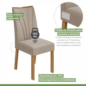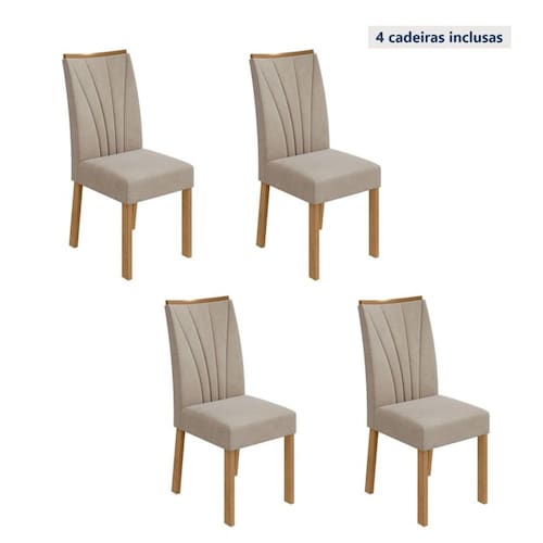Quer deixar sua casa completa? Então você precisa de móveis indispensáveis. O Conjunto com 4 Cadeiras Apogeu possui duas peças para que você deixe seu lar muito mais aconchegante, receptivo e sempre disponível para receber a visita de amigos, familiares e convidados. Aproveite! Almofada do assento: Fixa Altura do assento até o chão: 49.0000 Ambiente Principal: Sala de Jantar codigo_ean: 7909903241660 Complexidade da Montagem: Média: pode ser montado por mais de uma pessoa e/ou necessite de maior conhecimento para montagem Cor: Amêndoa Clean/Veludo Marromle Creme Dobrável: Não Enchimento do Assento: Espuma D-23 Enchimento do Encosto: Espuma D-23 Estrutura do Assento: MDF/MDP Estrutura do Encosto: MDF/MDP Itens Inclusos: 4 Cadeiras e Manual de Montagem Linha ou Coleção: Apogeu Manual de Montagem e Instalação: https://product-hub-prd.madeiramadeira.com.br/824551/documents/cffd81f4-a72d-4d71-b035-f79cc311de03d04894136654ea7060a8245501.PDF Manutenção: Limpar com flanela limpa e seca. Não usar produtos abrasivos. Necessita Montagem: Sim Origem do Produto: Nacional Peso: 9 kg Possui Apoio para Braços: Não Possui Apoio Para os Pés: Não Possui Rodízio: Não Quantidade de Itens: 4 Recomendações de Uso, Manutenção e Limpeza: Limpar com flanela limpa e seca. Não usar produtos abrasivos. Revestimento do Assento: Linho Revestimento do Encosto: Linho Sistema de Montagem: Parafuso Tipo de Assento: Fixo Tipo de Encosto: Fixo