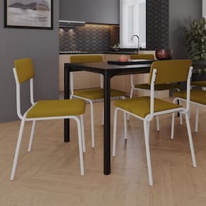 A Cadeira FIT destaca-se pelo seu design funcional e empilhável, ideal para ambientes residenciais e corporativos que valorizam praticidade e estilo. Com uma estrutura tubular aparente, ela alia o minimalismo ao toque industrial, proporcionando elegância e versatilidade. Seu excelente acabamento e as opções variadas de revestimento oferecem personalização e sofisticação. Criada pelo designer Hakim Hazim, a FIT é uma escolha inteligente para atender às demandas do dia a dia com conforto e bom gosto. Acabamento: Pintura Epóxi Acabamento da Estrutura: Pintura Almofada do assento: Fixa Altura do assento até o chão: 41 cm Ambiente Principal: Sala de Jantar Complexidade da Montagem: Média: pode ser montado por mais de uma pessoa e/ou necessite de maior conhecimento para montagem Cor: Mostarda City / Branco Fosco Cor do Produto: Mostarda City / Branco Fosco Cor dos Pés: Branco Dobrável: Não Enchimento do Assento: Espuma D-28 Enchimento do Encosto: Espuma D-23 Escala de Brilho: Fosco Estrutura do Assento: MDP Estrutura do Encosto: MDP Giratória: Não Itens Inclusos: 1 Conjunto C/04 Cadeiras + Manual de Montagem Linha ou Coleção: Fit Manual de Montagem e Instalação: https://cdn2.madeiramadeira.com.br/prd/metalig/2585246-1734094864-971933-142288.pdf Marca: Metalig Material da Base: Aço Material dos Pés: Aço Necessita Montagem: Sim Origem do Produto: Nacional Peso: 19,15 kg Possui Apoio para Braços: Não Possui Apoio Para os Pés: Não Possui Assento/Encosto Estofados: Possui Encosto e Assento Estofados Possui Espaldar: Sim Possui Rodízio: Não Recomendações de Uso, Manutenção e Limpeza: Para a limpeza, utilize flanela seca ou pano macio levemente umedecido em água. Utilize um pano seco em seguida. Evite contato com produtos químicos (solventes, thinner, acetona, etc) e não utilize nenhum tipo de esponja de aço. Revestimento do Assento: Tecido Revestimento do Encosto: Tecido Sistema de Montagem: Sapata fixa; Parafuso Suporta Até (kg): 120 kg Tamanho do Produto: 81 x 47,5 x 50,5 Tipo de Assento: Fixo Tipo de Encosto: Fixo Marca: Metalig