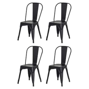 Conjunto 4 Cadeiras Iron Fosca Móveis Preto O estilo industrial continua em alta e as cadeiras iron são especiais para ambientar sua casa. Esta cadeira é de aço com pintura epóxi, o que a torna muito resistente, além da sua funcionalidade e leveza. A cor fosca tem o charme que falta para sua cozinha, varanda e área gourmet. Conjunto com 2 cadeiras fixas, composta em aço, para utilização em ambientes internos, com encosto para as costas e sem encosto para os braços. Não possui ajuste de altura. Não reclinável. Sua base em aço é sustentada em quatro pontos. O acabamento é feito em pintura epóxi fosca. Profundidade: 53 cm possui apoio para braços: não giratória: não dobrável: não suporta até (kg): 120 kg