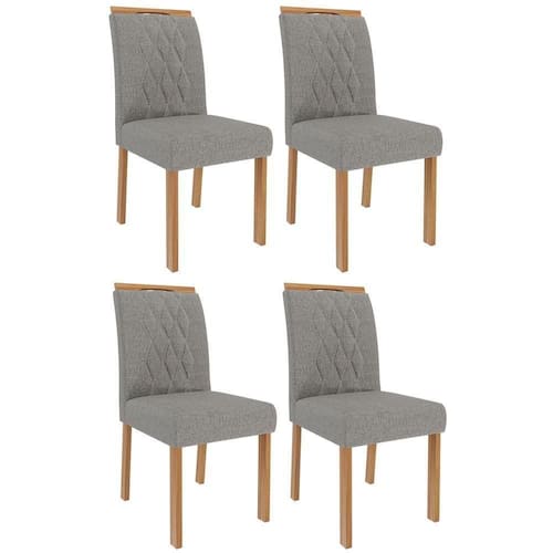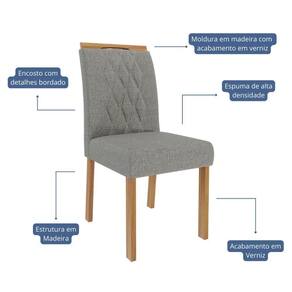 Conjunto 4 Cadeiras Juliana Wood Madeira/linho Grafite - Cimol Móveis Madeira/linho Grafite Conjunto 4 Cadeiras Juliana Wood - Cimol Móveis O Conjunto de Cadeiras Juliana Wood combina sofisticação e resistência, com estrutura e pés em Madeira Tauari e acabamento em verniz. O assento revestido em tecido e espuma de alta densidade proporciona conforto, enquanto o encosto com detalhe bordado adiciona um toque de elegância. Com design clássico e acabamento refinado, cada cadeira suporta até 100kg, tornando-se a escolha perfeita para compor ambientes acolhedores e sofisticados. ESPECIFICAÇÕES: - Estrutura em Madeira Tauari - Acabamento em verniz - Revestimento em tecido - Espuma de alta densidade - Encosto com detalhe bordado - Moldura em madeira com acabamento em verniz - Pés em Madeira Tauari - Cada cadeira tem capacidade para suportar até 100kg