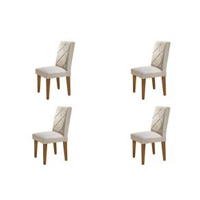 Conjunto 4 Cadeiras Madeira Moscou Rufato Veludo Creme/Capuccino - Marrom