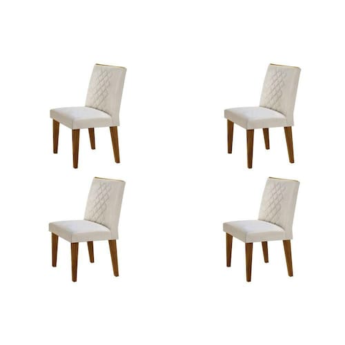 Informações Complementares: Cadeiras produzidas em madeira, estofadas com espumas e tecidos de qualidade, e acabamento em pintura PU, que garante maior durabilidade da cor.